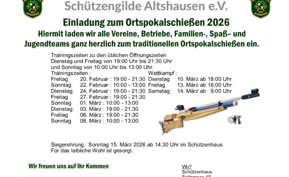 Am 27.08.2022 um 14 Uhr begann das Ferienprogramm des Schützenvereins Altshausen. Nachdem jeder seinen Laufzettel und ein Namenschild hatte, ging es mit einer kurzen Begrüßung los. Jeder der Kinder durfte einen Zettel mit einer Gruppennummer ziehen, so entstanden vier Gruppen, zwei vierer und zwei dreier Gruppen. Jeder suchte sich eine der […]
